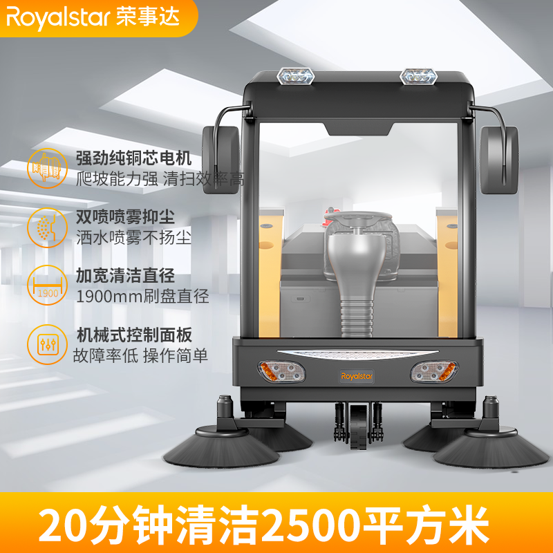 榮事達RS-DS180駕駛式掃地車鋰電款,支持快充、隨充隨用。
