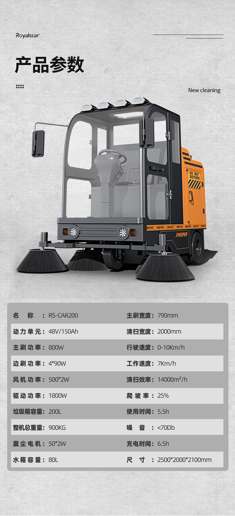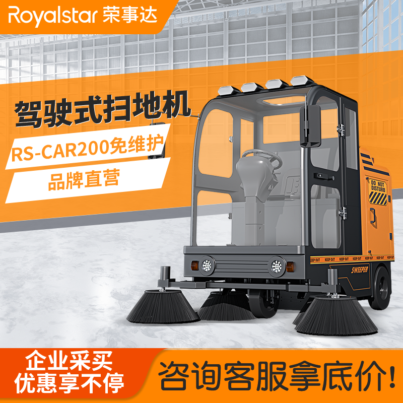榮事達RS-CAR200 駕駛式掃地機配備了雙吸風電機,采用過載欠壓保護裝置,使用更加安全,駕駛式掃地機不僅配備了自...