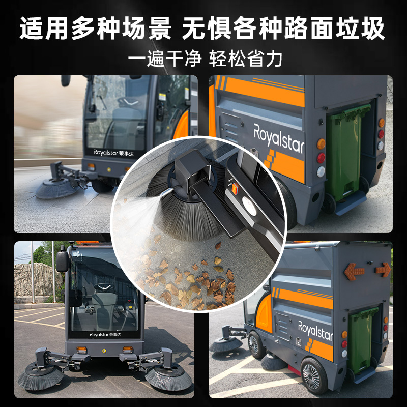 四輪清掃車240L掛桶清潔,1小時高效清掃25000㎡,磚頭可清掃,強勁4邊刷+4主刷系統,8700W大功率動力,掃...