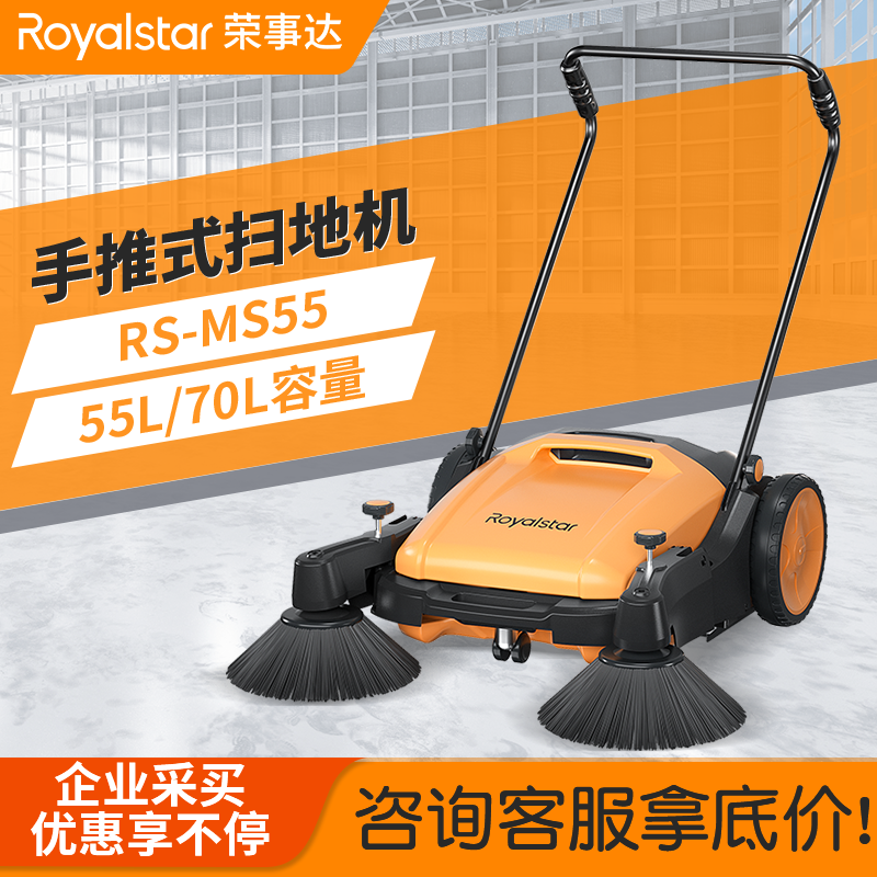 榮事達RS-MS55 手推式掃地機主要依靠滾刷、邊刷來完成清掃工作,結構相對簡單,操作方便快捷, 整機不需要任何電動...