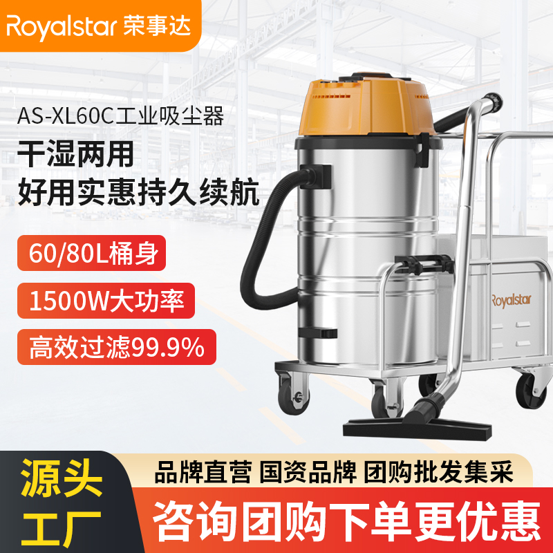 榮事達1500W工業吸塵器AS-XL60C、AS-XL80D兩種規格可選,60L/80L容量桶身,干濕兩用無線清潔,...