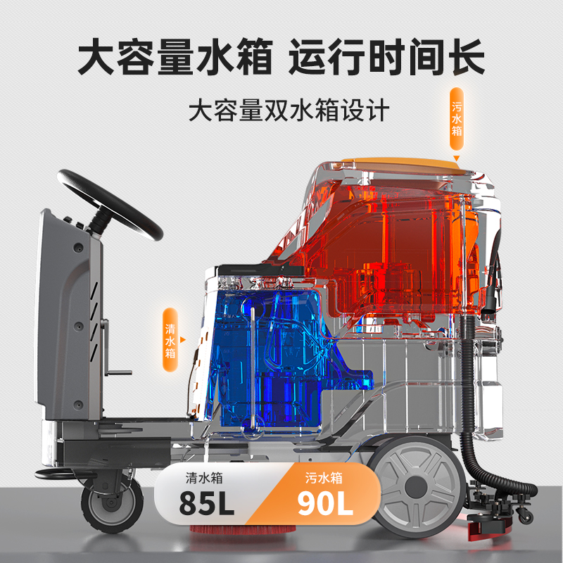 榮事達RS-D85 駕駛式洗地機有單刷加液款、單刷免維護款和雙刷免維護款三種,不同的型號在使用性能上存在一定的差異,...